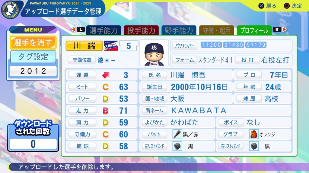 これらの成績とデフォの肩力を加味した際、低く見積もっても守備力Cは必要と判断したので今回は守備をCまで上げました。