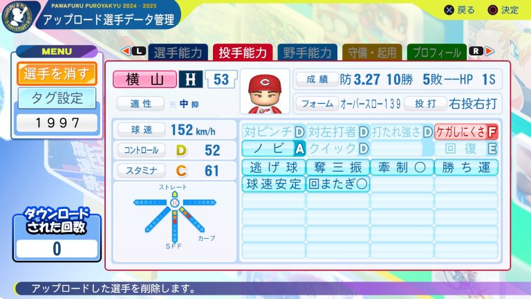 【パワプロ2025】1997横山竜士(広島) パワナンバー【再現選手】